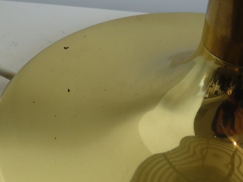Prachtige lamp uit de jaren 60 ontworpen door Anders Pehrson voor Ateljé Lyktan gevestigd in Åhus in Zweden. Door het filter onder de kap geeft de lamp een prachtig zacht licht. Metalen messing voet en kunststof kap. Gezien de leeftijd en kwetsbaarheid in extreem goede staat, omdat zowel de kap als het filter in veel gevallen scheurtjes of barsten vertonen. Niet bij dit exemplaar. Het messing vertoont enkele gebruikssporen in de vorm van wat lichte aanslag.
